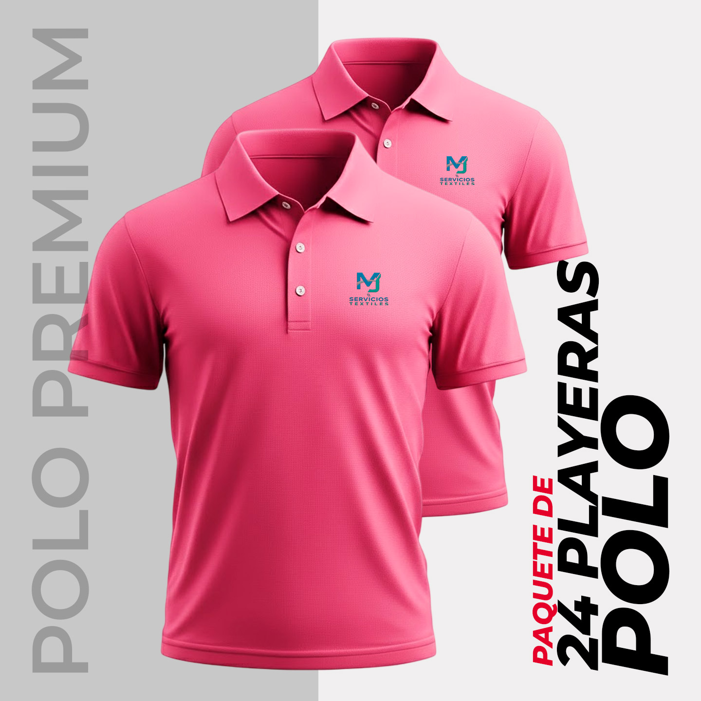 Aprovecha nuestro pack de 24 playeras tipo polo premium, perfectas para uniformes empresariales, promocionales, restaurantes, equipos de ventas o eventos especiales. Confeccionadas en algodón suave tipo pique, ofrecen una excelente imagen profesional y máxima comodidad para el día a día.