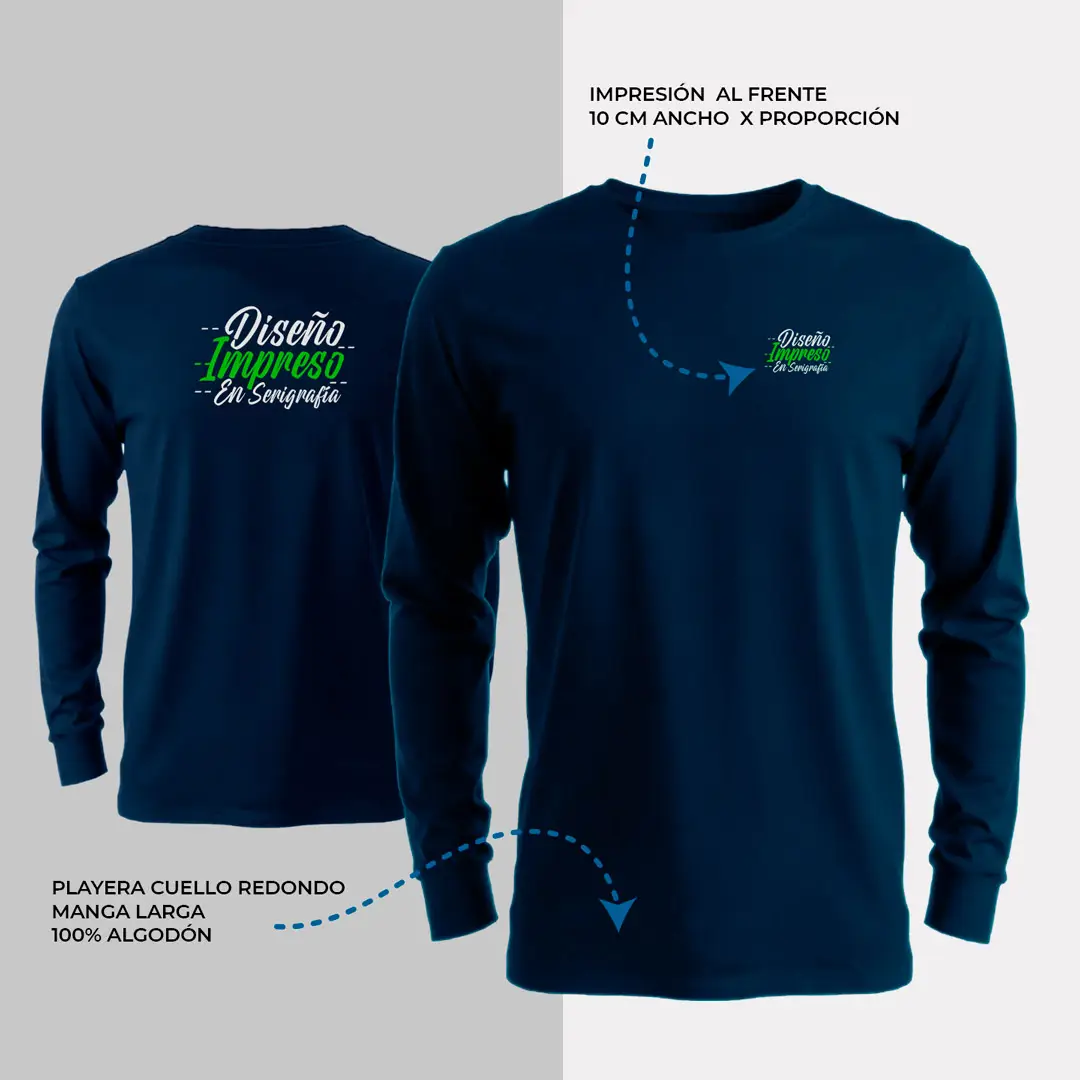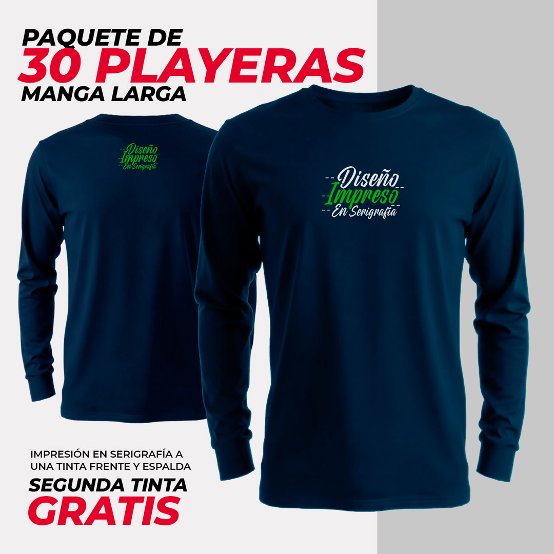 Aprovecha nuestro pack de 30 playeras manga larga cuello redondo, ideales para uniformes, promociones o eventos especiales. Confeccionadas en algodón suave y cómodo, disponibles en varios colores para adaptarse a tu estilo o marca.