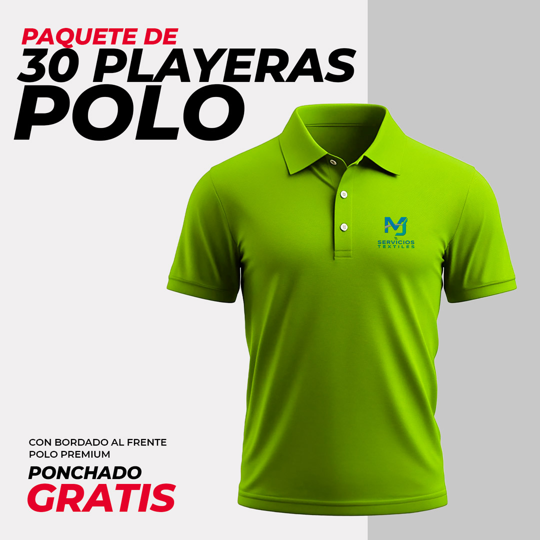 Aprovecha nuestro pack de 30 playeras tipo polo premium con logotipo bordado, perfectas para uniformes empresariales, promocionales, restaurantes, equipos de ventas o eventos especiales. Confeccionadas en algodón suave tipo pique, ofrecen una excelente imagen profesional y máxima comodidad para el día a día.
